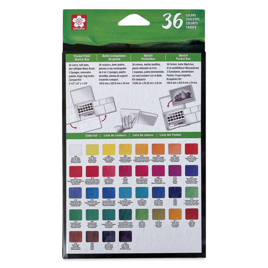 סט 36 צבעי מים ומכחול מיכל מיוחד - Sakura Koi set XNCW-48N