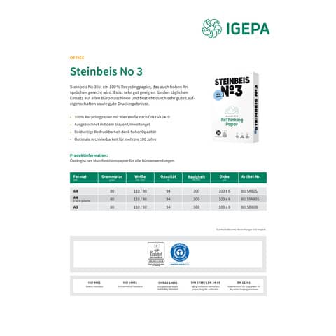 נייר צילום ממוחזר 100% גוון לבן Steinbeis Purewhite