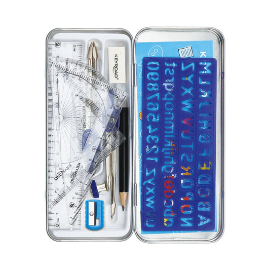 • סט שרטוט 11 חלקים בקופסת מתכת Keyroad
