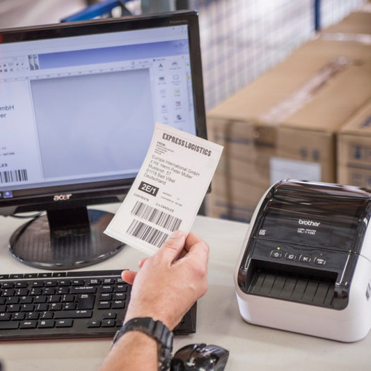 באנדל מדפסת מדבקות Brother QL-1100 + 3 גלילי מדבקה DK-22205