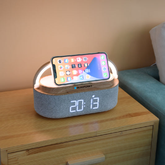 רדיו שעון מעוצב עם תאורת לד ומשטח טעינה אלחוטית Blaupunkt BP1700