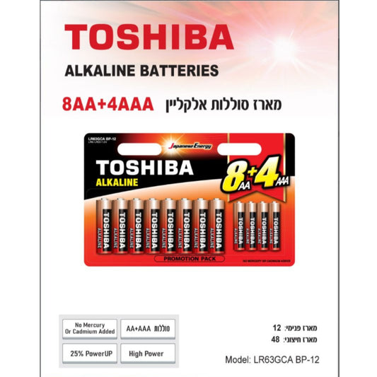 מארז 12 סוללות Toshiba RED 4AAA+8AA