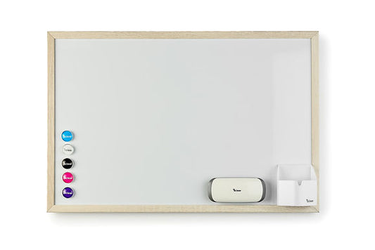 לוח מחיק לבן מגנטי עם מסגרת עץ בהירה 120/80