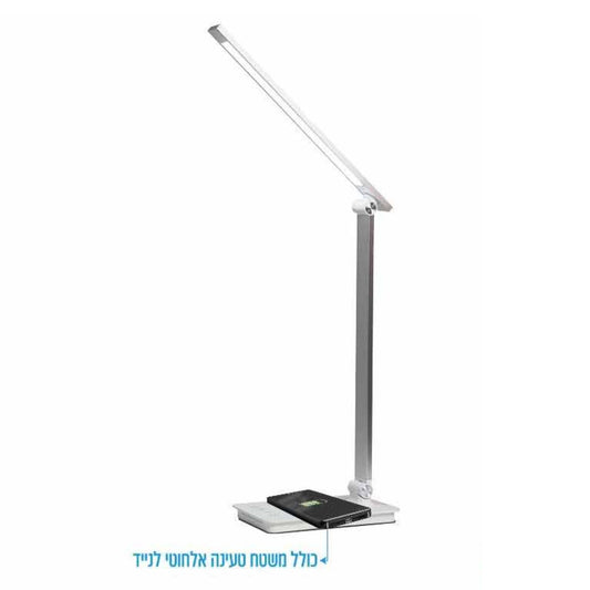 מנורת שולחן לני עם טעינה אלחוטית - Omega 5V/2A 10W לבן