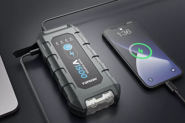 בוסטר נייד TOPDON V1500, 1500 אמפר, מתניע רכבים, סירות ואופנועים (בנזין עד 6.5 ליטר, דיזל עד 4.0 ליטר), מטעין טלפונים וטאבלטים, עם פונקציית Boost לסוללות קשות, פתרון מושלם לחירום.