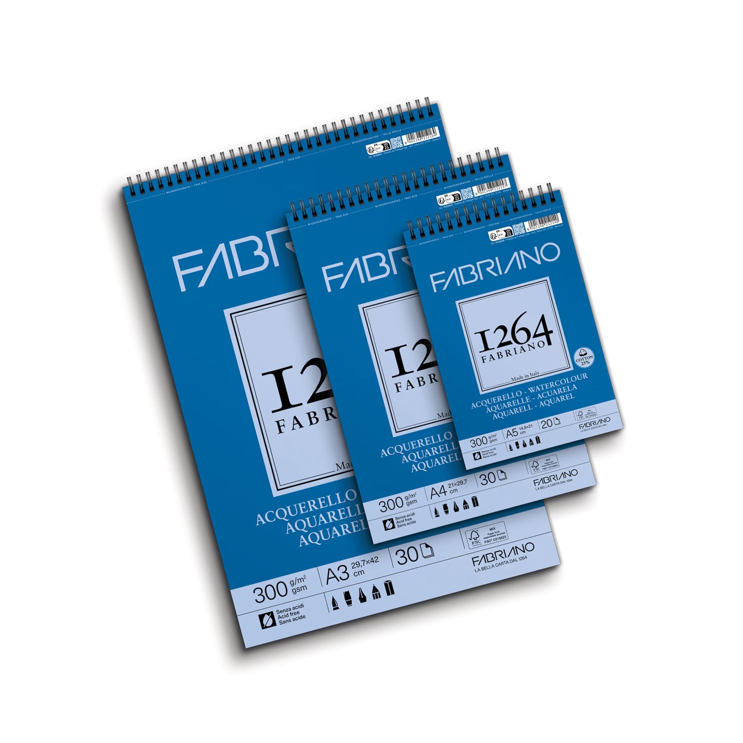 בלוק לצבעי מים אקוורל ספירלה 300 גרם, A3 - Fabriano 1264