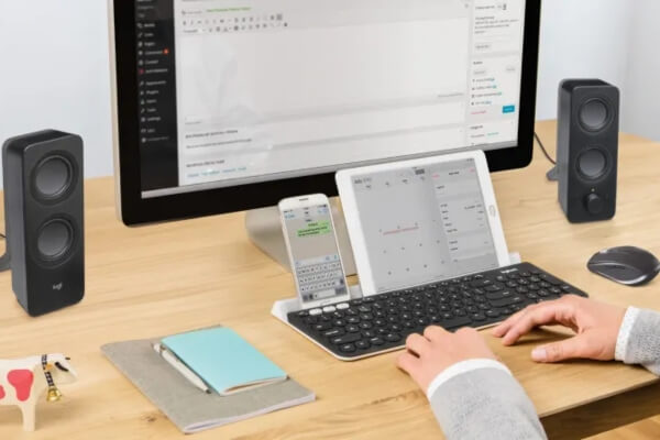 חבר עד שני התקני Bluetooth ועבור בקלות ביניהם עם Easy-Switch™. פשוט השהה מכשיר אחד, החלף והפעל ממכשיר אחר - או חבר מכשיר אחד דרך כניסת 0.14 אינץ' (3.5 מ"מ).