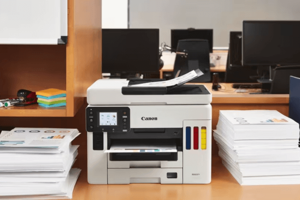 Canon MAXIFY GX7040 היא מדפסת עסקית משולבת הכוללת הדפסה, סריקה, צילום ופקס, ומתאימה במיוחד למשרדים עם נפח עבודה גבוה. היא מציעה הדפסה דו־צדדית אוטומטית, מזין מסמכים ADF ל־50 דפים, מסך מגע צבעוני נוח וחיבוריות מלאה – Wi-Fi, רשת קווית ו-USB. טכנולוגיית מיכלי הדיו למילוי חוזר מספקת איכות הדפסה גבוהה ומהירות מרשימה, לצד תפעול פשוט ויעיל ביום-יום.