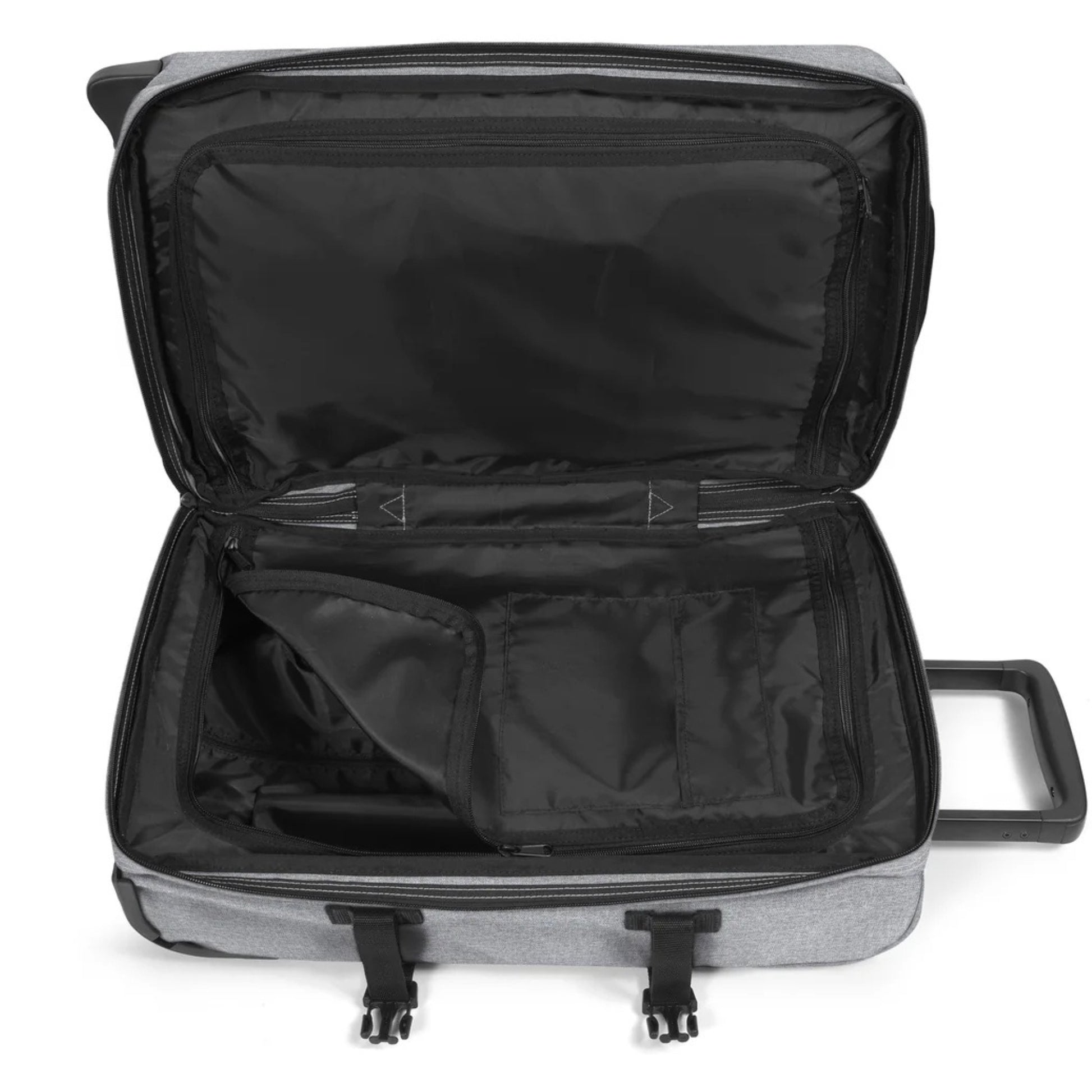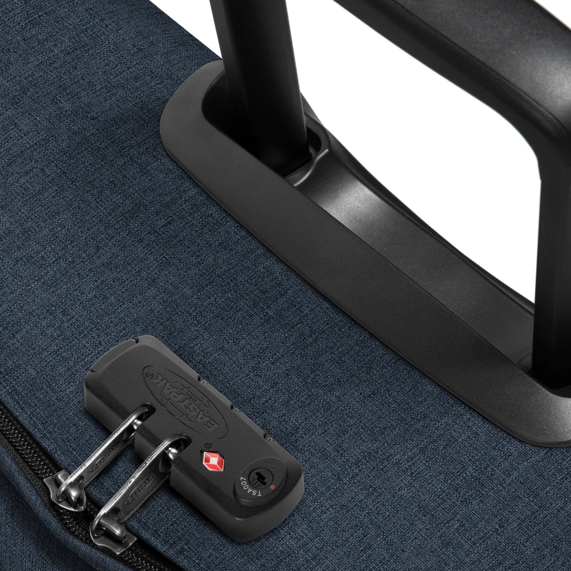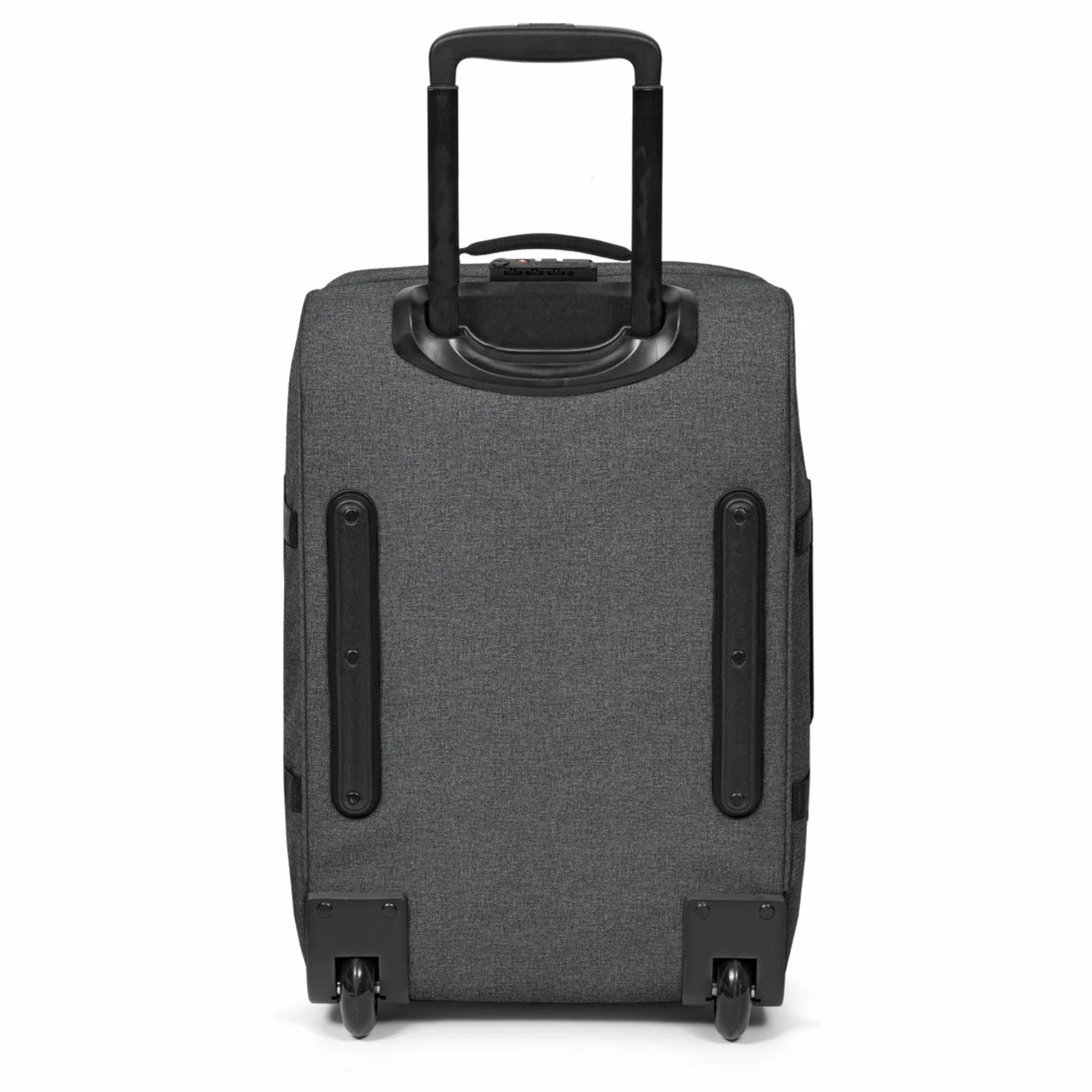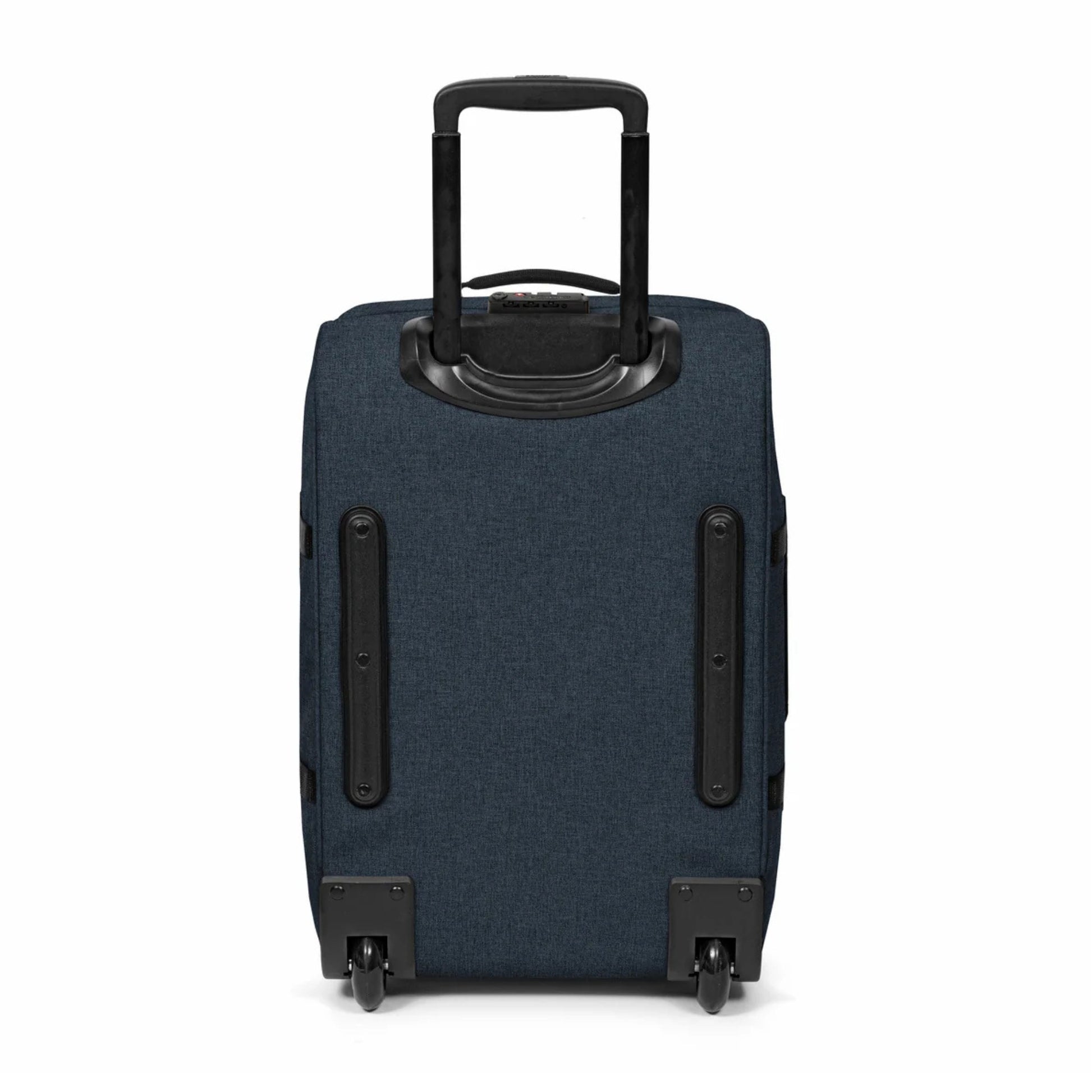 מזוודת Duffle Trolley Tranverz S בגודל תא נוסעים ובצבע ג'ינס שחור מציעה שני תאים עיקריים עם ארגון דו־קומפקטי מרווח ומנעול TSA מובנה לאבטחה מירבית. עשויה 100% פוליאסטר כחומר חיצוני עמיד במים, עם רצועות דחיסה ורצועות בגדים לשמירת הסדר בתכולה. מצוידת במערכת הובלה טלסקופית, שני גלגלים וידית צדדית לנשיאה נוחה ותמרון קל בשדות תעופה וברחובות. משקלה 2.41 ק"ג, ומתאימה כגודל תא נוסעים המאושר ברוב חברות התעופה.