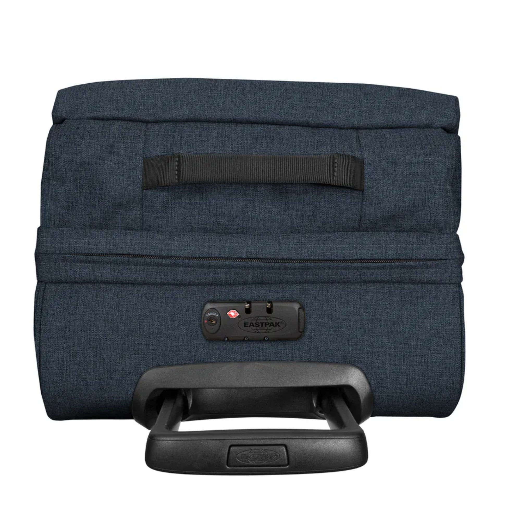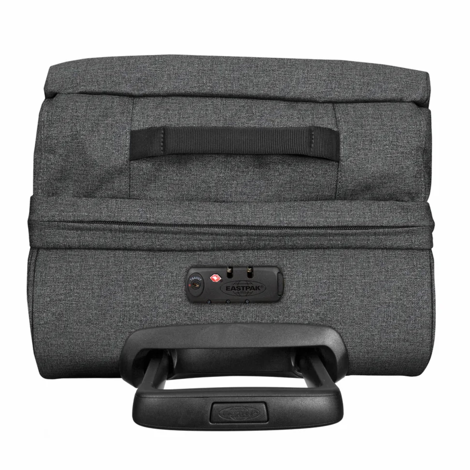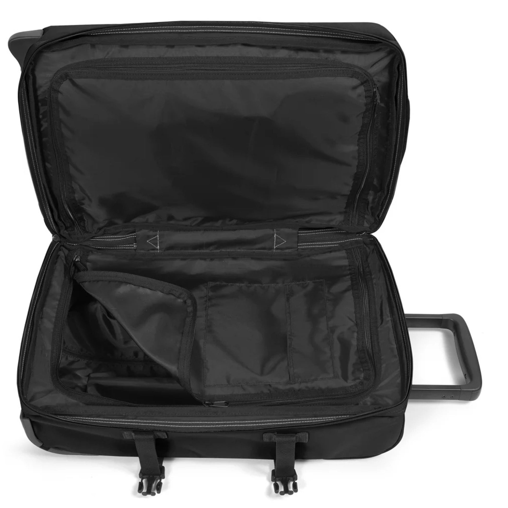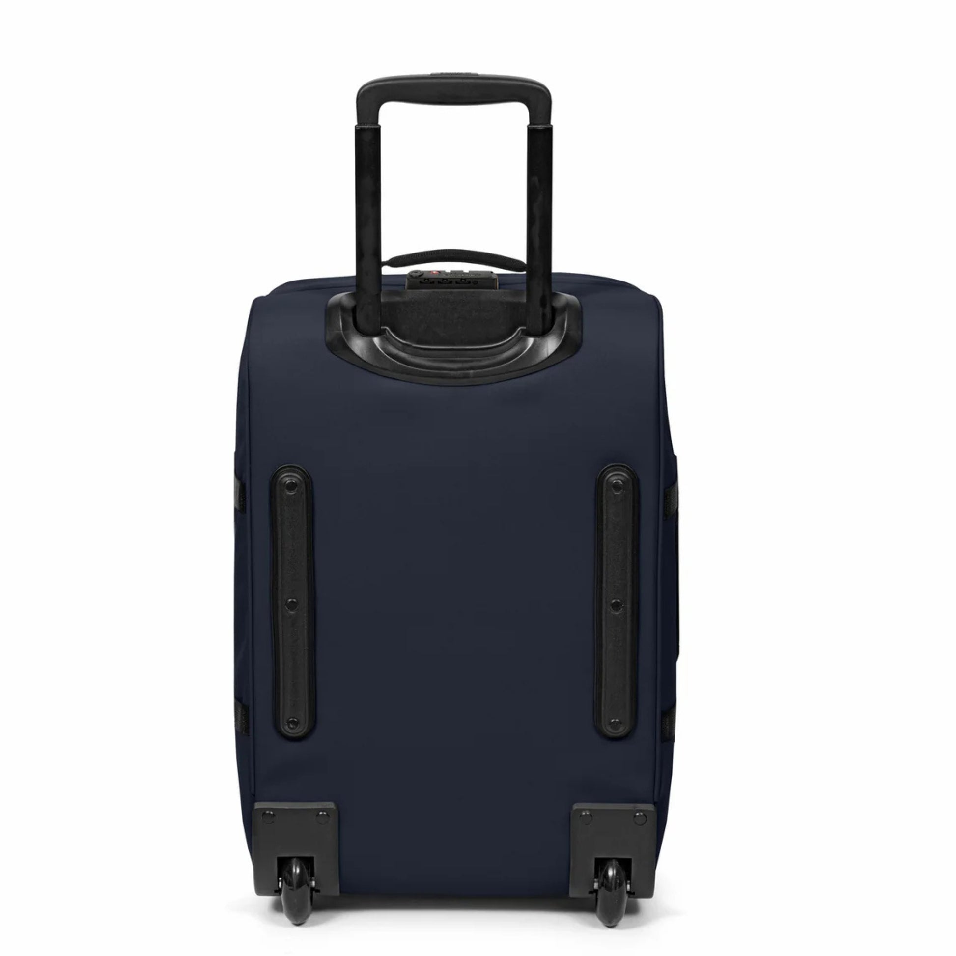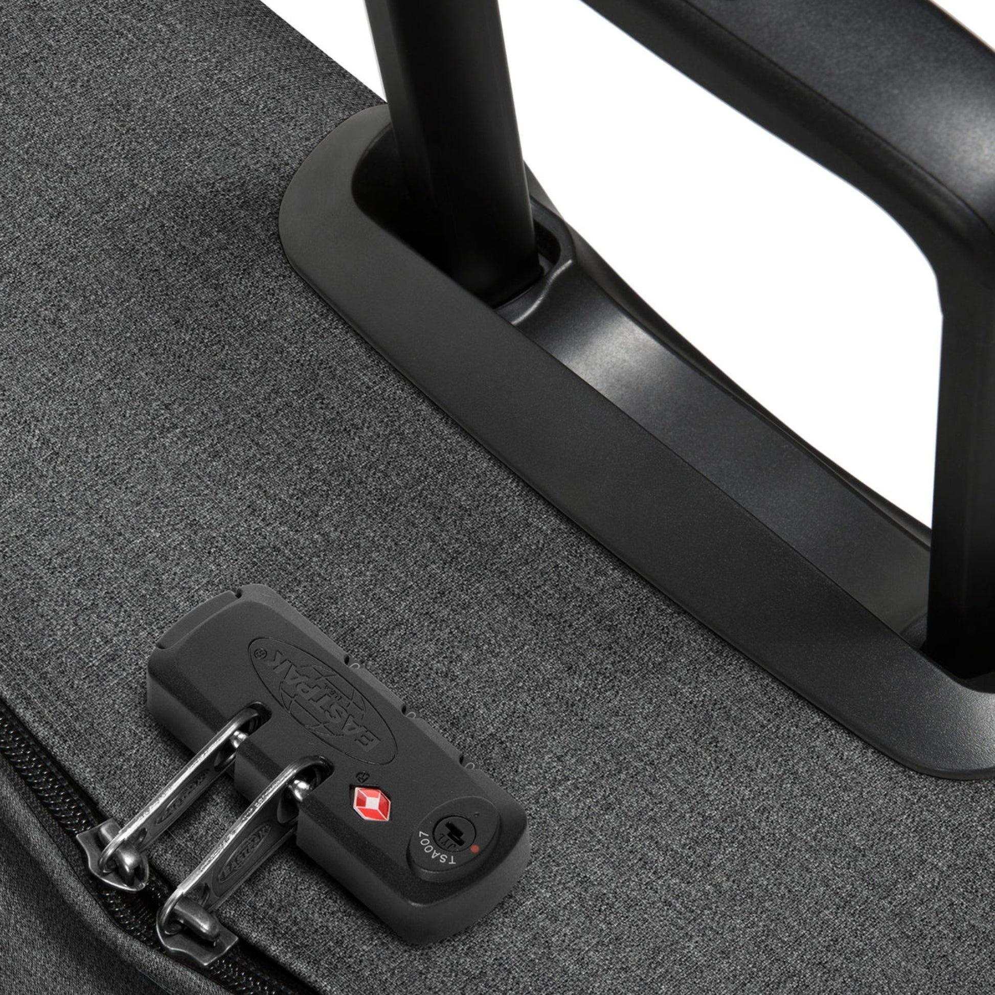מזוודת Duffle Trolley Tranverz S בגודל תא נוסעים ובצבע ג'ינס שחור מציעה שני תאים עיקריים עם ארגון דו־קומפקטי מרווח ומנעול TSA מובנה לאבטחה מירבית. עשויה 100% פוליאסטר כחומר חיצוני עמיד במים, עם רצועות דחיסה ורצועות בגדים לשמירת הסדר בתכולה. מצוידת במערכת הובלה טלסקופית, שני גלגלים וידית צדדית לנשיאה נוחה ותמרון קל בשדות תעופה וברחובות. משקלה 2.41 ק"ג, ומתאימה כגודל תא נוסעים המאושר ברוב חברות התעופה.