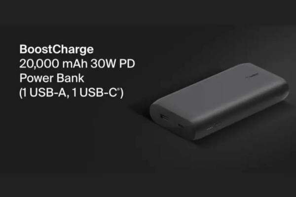 מטען נייד מבית Belkin, עם קיבולת 20,000mAh להטענה מרובה לאורך היום.
