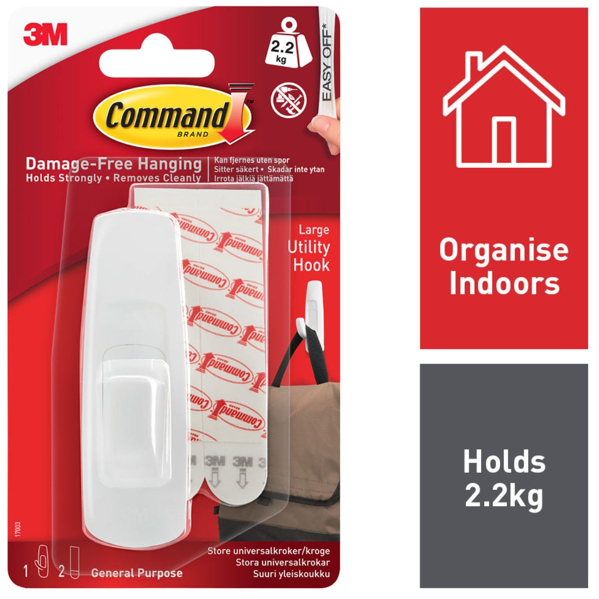 מתלה דביק גדול לבן לסחיבה של עד 2.5 ק"ג, מגיע עם דבק להחלפה במקרה הצורך. ניתן להורדה ללא נזק לקיר.