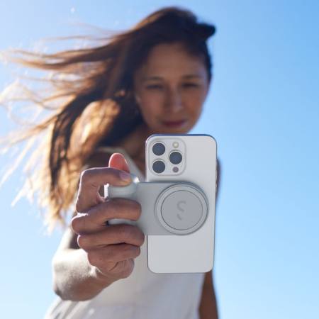 סוללה מגנטית ניידת עם אחיזה ShiftCam SnapGrip Pro מציעה חוויית צילום נוחה ויציבה עם טעינה אלחוטית מתקדמת. העיצוב הארגונומי בגודל כיס מאפשר אחיזה נוחה וצילום יציב במצב אנכי ואופקי עם תחושה המזכירה מצלמת  Dslr.