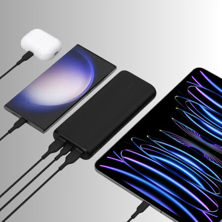 עם שלוש יציאות, אחד מסוג USB-C ושניים USB-A התומכות בטעינה מהירה עד 20W, תוכלו להטעין מכשירי אייפון, גלקסי, פיקסל או כל מכשיר אחר הנטען באמצעות USB-C.