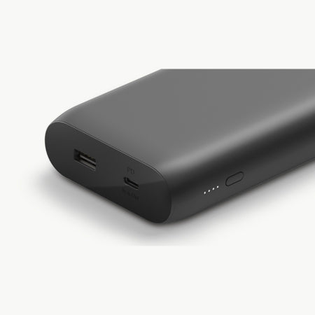 הכירו את ה-USB-C ® Power Bank 20K – סוללת גיבוי עוצמתית עם קיבולת של 20,000mAh, שמספקת עד 9 שעות עבודה נוספות ל-MacBook, 28 שעות לאייפד ו-77 שעות לטלפון. טעינה מהירה ונוחה עם יציאות USB-A ו-USB-C, כך שתוכלו להטעין את המכשירים שלכם בכל מקום, גם בלי שקע חשמלי. אידיאלי לטיסות ארוכות, שיחות ועידה ועבודה בכל מקום!
