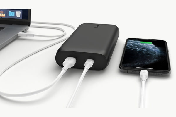 מטען נייד מבית Belkin עם קיבולת 20,000mAh וטעינה מהירה ב-USB-C Power Delivery (PD). תומך במכשירים כמו iPhone 16, iPad Pro, Samsung Galaxy S25. כולל כבל USB-C, טעינה דו-מכשירית, יציאת USB-C עד 30W ל-MacBook ו-USB-A עד 12W למכשירים קטנים יותר. חיי סוללה ארוכים – עד 9 שעות. כולל הגנה מחום ומתח-יתר ועיצוב קומפקטי עם נורית חיווי LED.