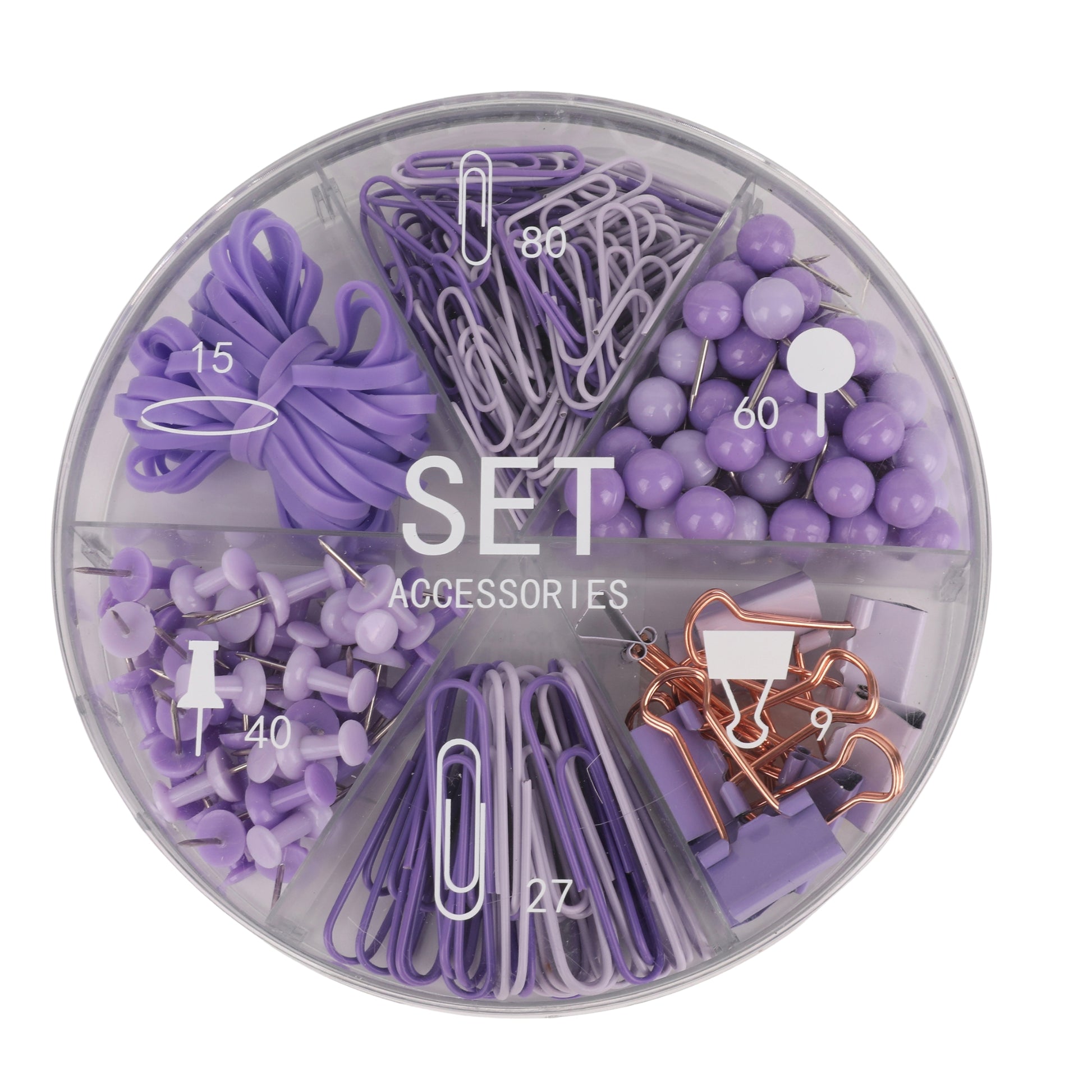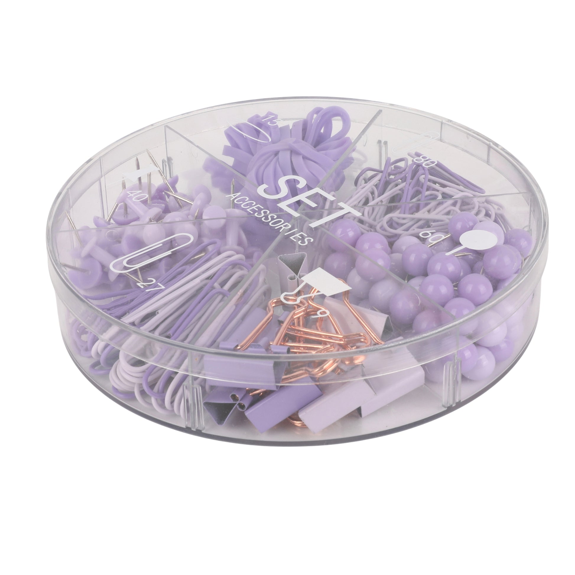 סט סיכות, לחצנים, אטבים גומיות ונעצים ורוד סגול Sketch