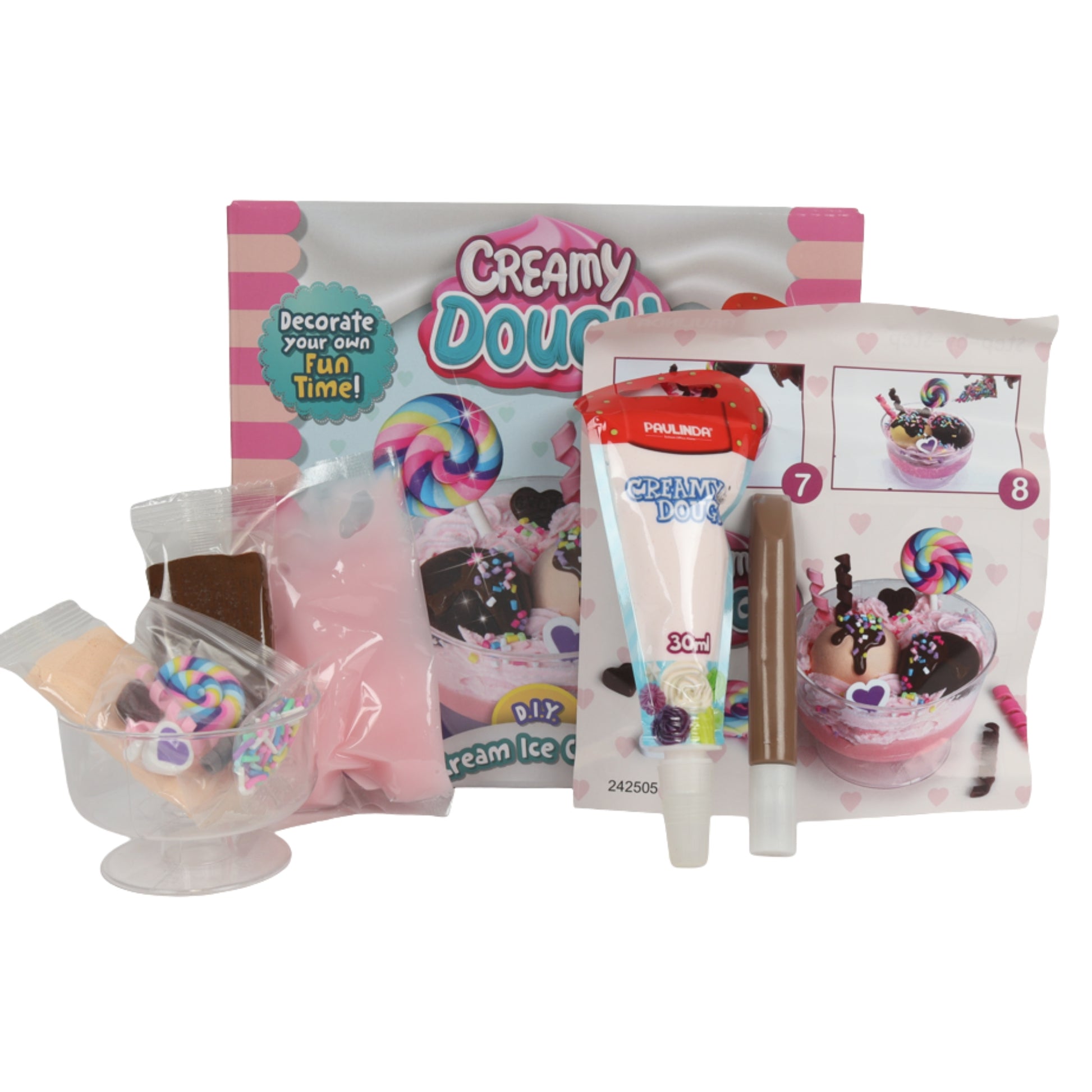 ערכת Cream Ice Cream מאפשרת לילדים ליצור גלידות מדמוי בצק קרמי בצורה מהנה ויצירתית. כוללת בצק קרמי מוכן מראש, צבעי מאכל, תוספות כמו פצפוצים וכדורי קצף, קערית גלידה עם בסיס ופל, כלי יצירה שונים וקופסאות אחסון.
