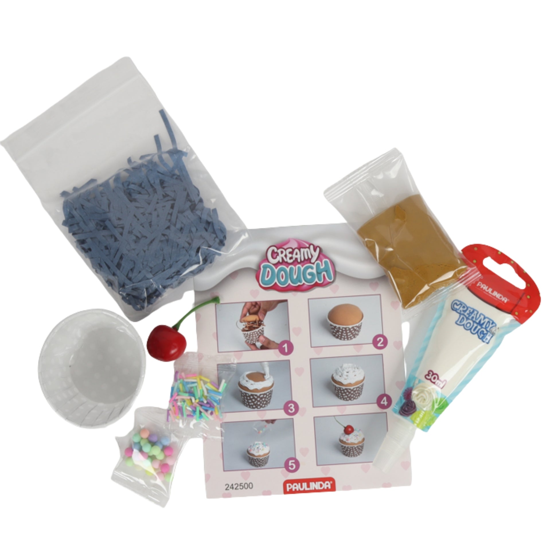 ערכת היצירה Cupcake Dough Set מאפשרת לילדים לקשט קאפקייקס מבצק רך וצבעוני, תוך ביטוי דמיון ויצירתיות. מתאימה לילדים מגיל 3 ומעלה. כוללת שלושה גווני בצק, תבניות קאפקייקס מפלסטיק ואביזרים לעיצוב וקישוט כמו שקיק זילוף – לחוויית משחק מהנה ויצירתית.