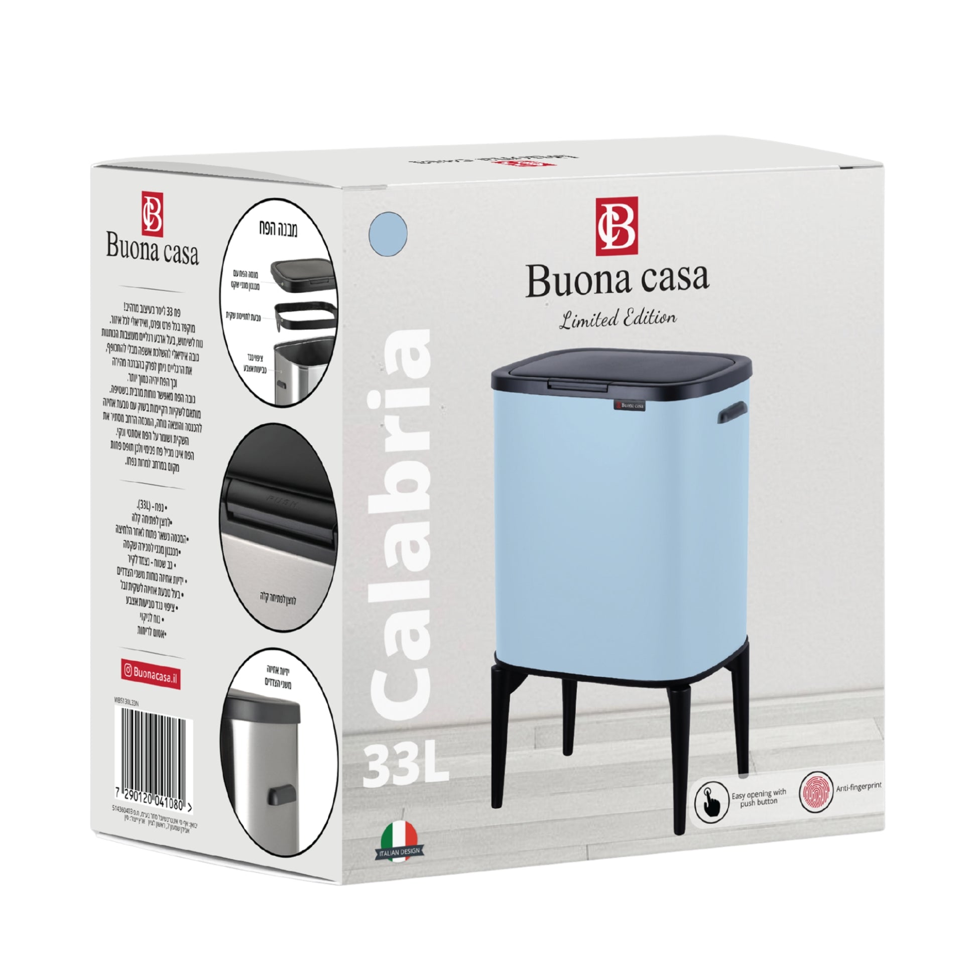 פח 33 ליטר Calabria מוקפד בכל פרט ומתאים לכל איזור בבית או במשרד. הפח נוח לשימוש וכולל ארבע רגליים מעוצבות המעניקות גובה אידיאלי להשלכת אשפה ללא התכופפות, עם אפשרות לפרק את הרגליים במהירות להנמכת הפח. הגובה מאפשר נוחות מרבית בשטיפה. הפח מותאם לשקיות סטנדרטיות וכולל טבעת אחיזה לנוחות בהכנסה והוצאה של השקית, והמכסה הרחב מסתיר אותה למראה נקי ואסתטי. הפח אינו כולל פח פנימי, ולכן תופס פחות מקום במרחב למרות נפחו הגדול.