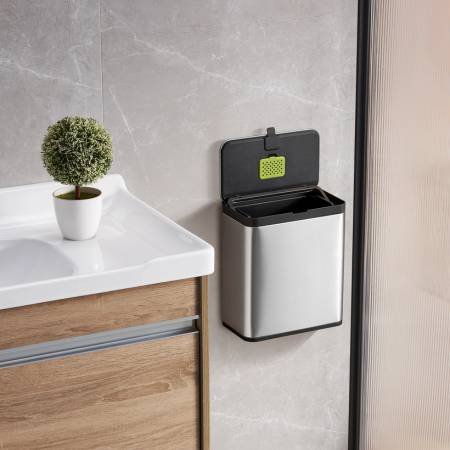 הפח מצויד בתא פנימי ייעודי למסנן פחם פעיל או קפסולת בושם, לנטרול יעיל של ריחות ושמירה על אווירה רעננה ונעימה במטבח.