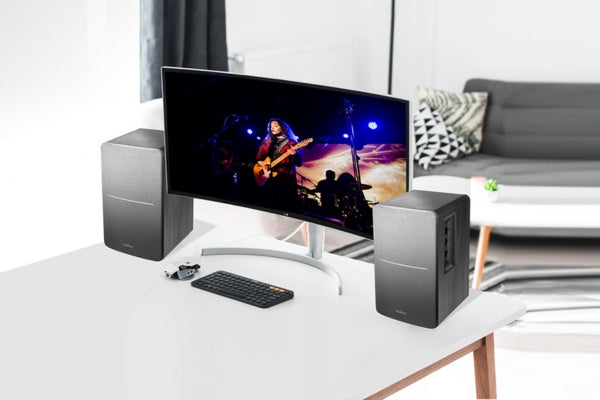 הכירו את הרמקולים המושלמים שיגרמו לכל חדר להישמע מעולה ולהיראות מדהים – רמקולי מדף ספרים עוצמתיים בעיצוב רטרו אלגנטי, עם הספק כולל של RMS W42, שני דרייברים לטווח בינוני/בס בגודל 4 אינץ' יוצרים נמוכים עשירים, שני דרייברים של דיאפרגמה משי בגודל 0.5 אינץ' מייצרים שיאים חדים, כניסות RCA כפולות לחיבור נוח למגוון מכשירים ושליטה קלה לשימוש יומיומי.