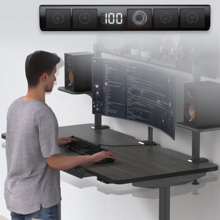 לוח הבקרה ממוקם כולו מתחת לשולחן העבודה, מה שמבטיח שהוא לא בולט מהקצה, ומסיר את הסיכון למגע מקרי. הוא כולל תפעול חכם, עם שתי הגדרות זיכרון קבועות מראש לכוונון גובה ותצוגת גובה בזמן אמת.
