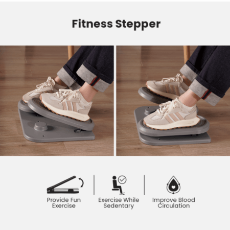 הדום רגליים ארגונומי עם סטפר – מספק חוויה של אימון רגליים מהנה ואפקטיבי במהלך הישיבה ומפחית מתח מהרגליים. מתכוונן בזווית 0 עד 25° מושלם למנוחה ופעילות גופנית של כפות הרגליים במהלך תקופות ישיבה ארוכות.