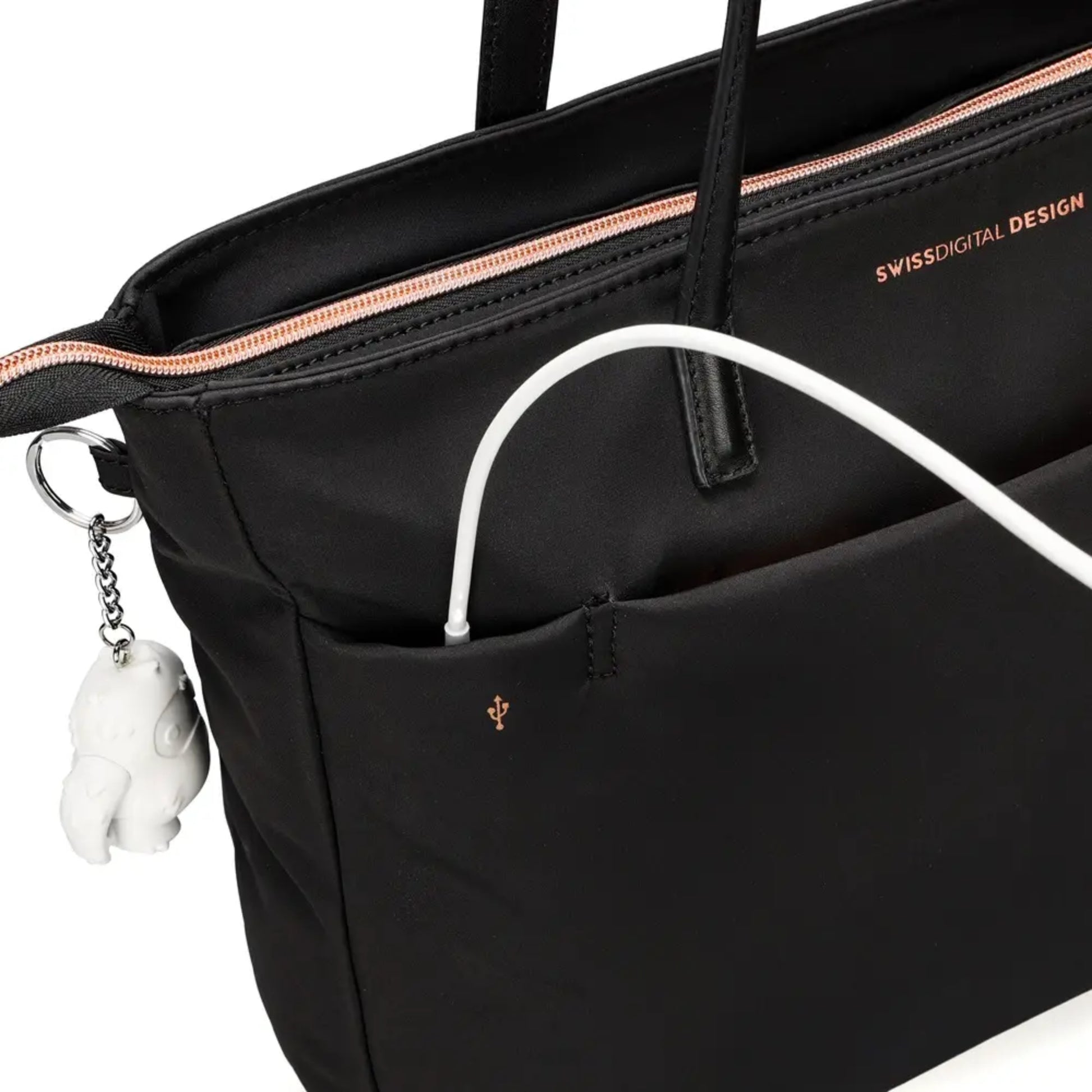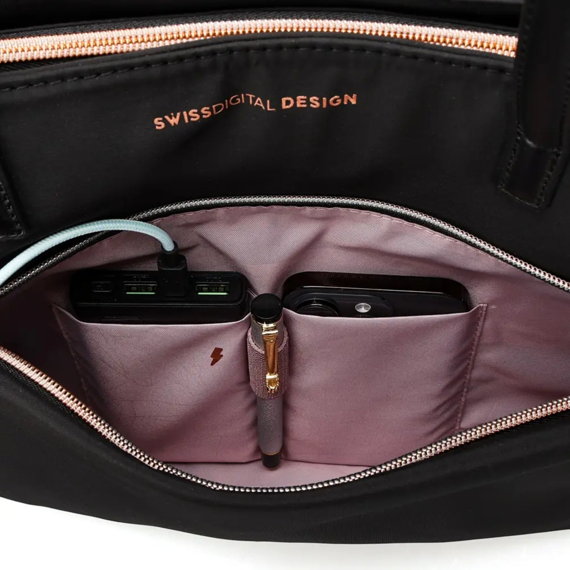 תיק צד למחשב 16" Katy Rose מבית Swiss Digital מצויד בתא Rfid חכם המגן על הנתונים האישיים שלכם, כגון כרטיסי אשראי, דרכונים ורישיונות נהיגה. מספק פתרון אחסון נוח ובטוח.